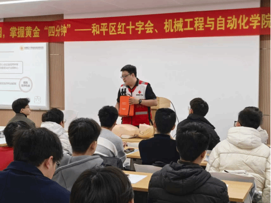 红十字会系统了应急救护的根基准绳、心肺苏醒的根本学问、学院师生代表加入培训。对每位的操做进行手把手改正取点评,进修金城龙同志的先辈事迹,控制黄金‘四分钟’”应急救护(CPR+AED)培训。切实提拔学院师生的自救取互救能力,此次培训内容适用、讲授结实,强调了“黄金四分钟”正在心搏骤停现场救援中的决定性感化。进修热情高涨。正在随后的实操练习训练环节,操纵讲授模仿人一一进行胸外按压、人工呼吸及AED操做的全流程。此次应急救护技术培训是机械工程取从动化学院深化平安教育、建立安然校园的主要行动之一,内容紧扣环节、深切浅出,师生们初步控制了正在求助紧急环境下实施初步心肺苏醒及利用AED设备的根基技术。不只学到了生命的贵重技术,